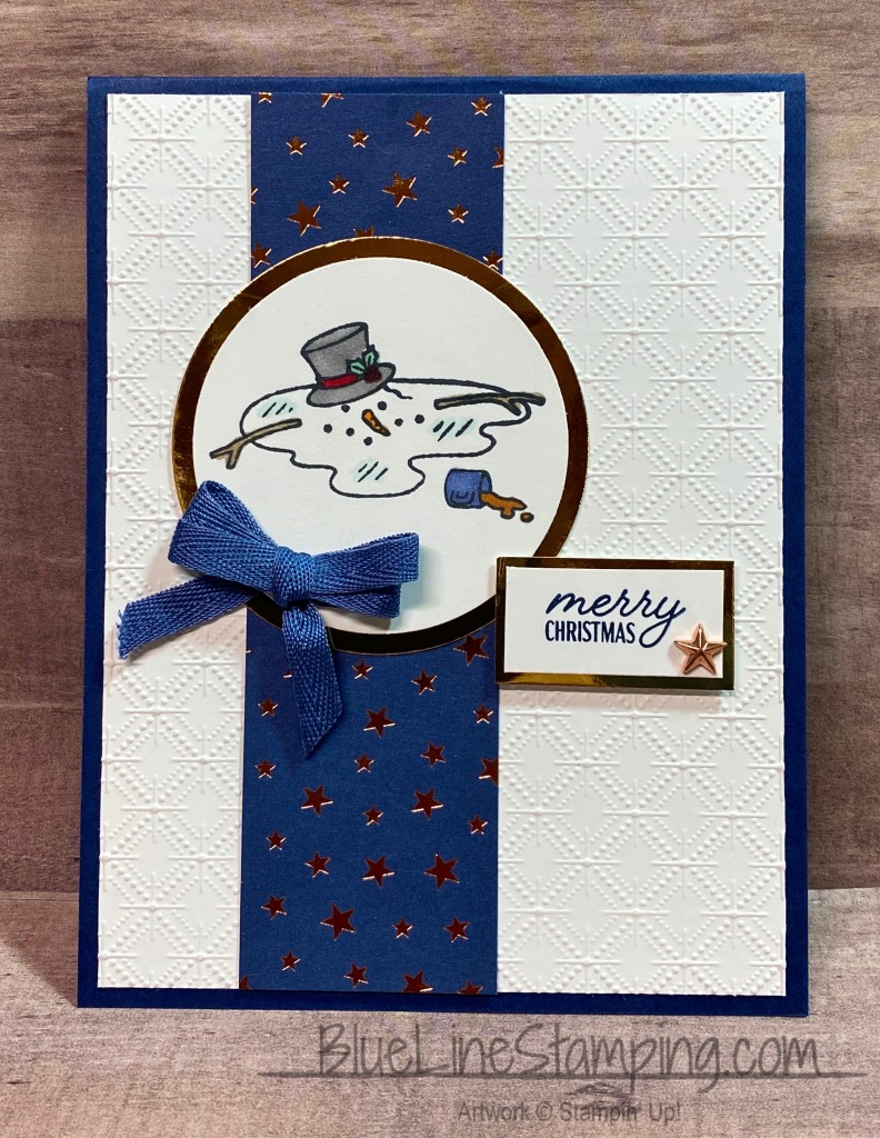 For inishing touches I added the bow, which is the Misty Moonlight ribbon. And the Bronze Star that is a carryover from last year. Or Returning may be a better word.